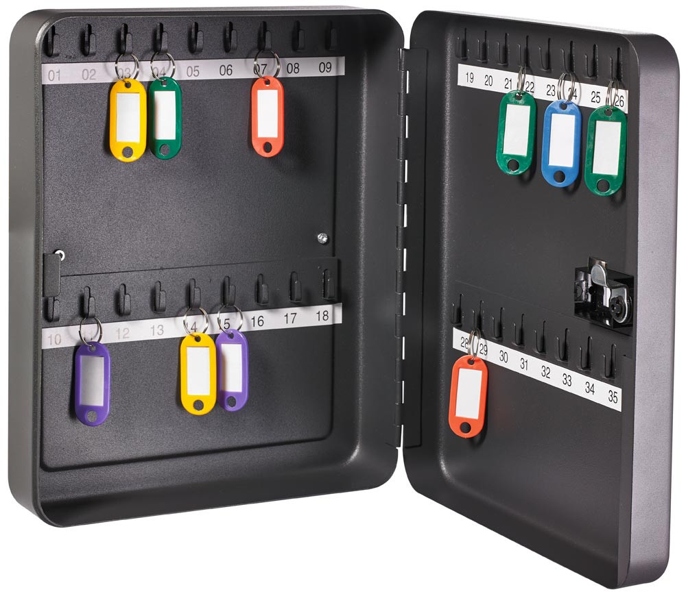 Schlüsselkasten, Stahlblech, für 36 Schlüssel, BxTxH 240x80x300 mm, Zahlenschloss, anthrazit