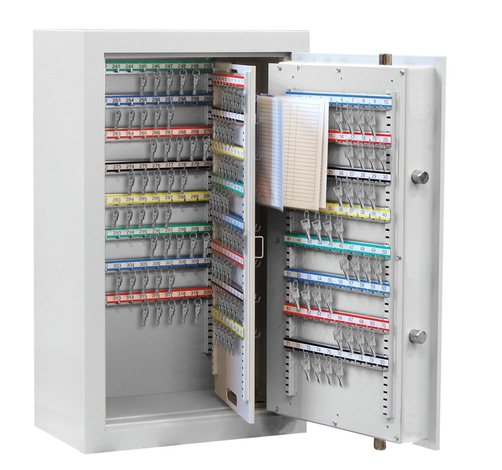 Schlüsseltresor, Sicherheitsstufe A + S1, 300 Haken, 1-türig, BxTxH 460x300x636 mm, RAL 7035 lichtgrau EP520783