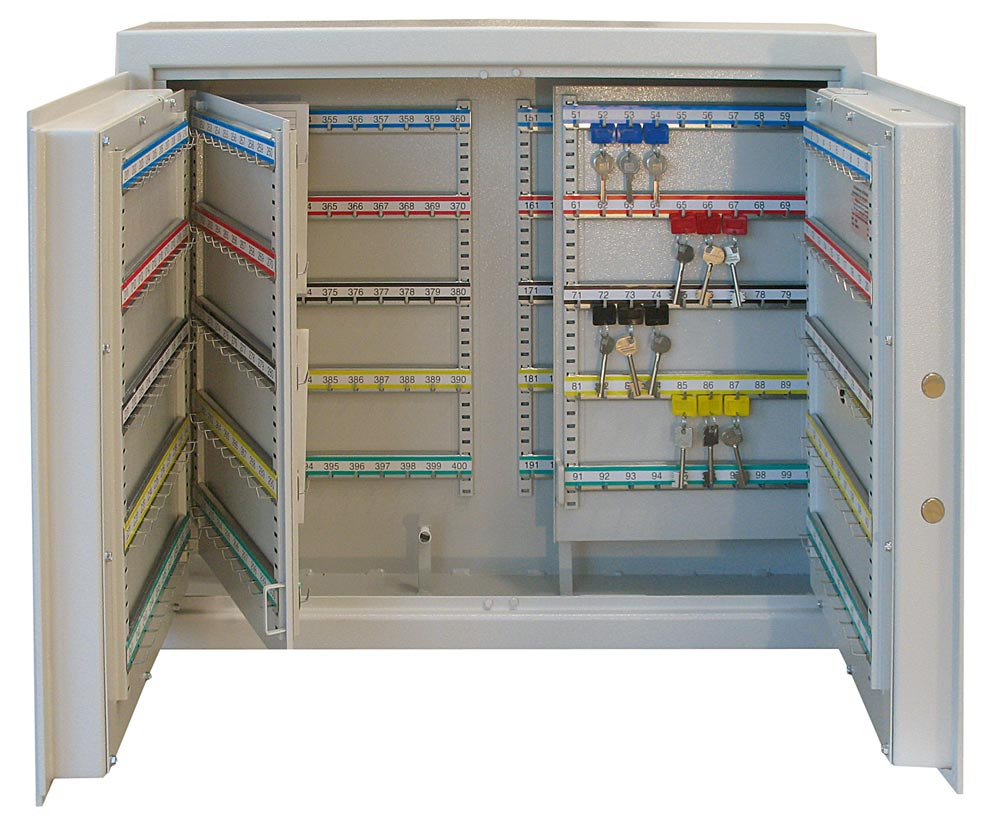 Schlüsseltresor, Sicherheitsstufe A + S1, 300 Haken, 1-türig, BxTxH 460x300x636 mm, RAL 7035 lichtgrau EP520783