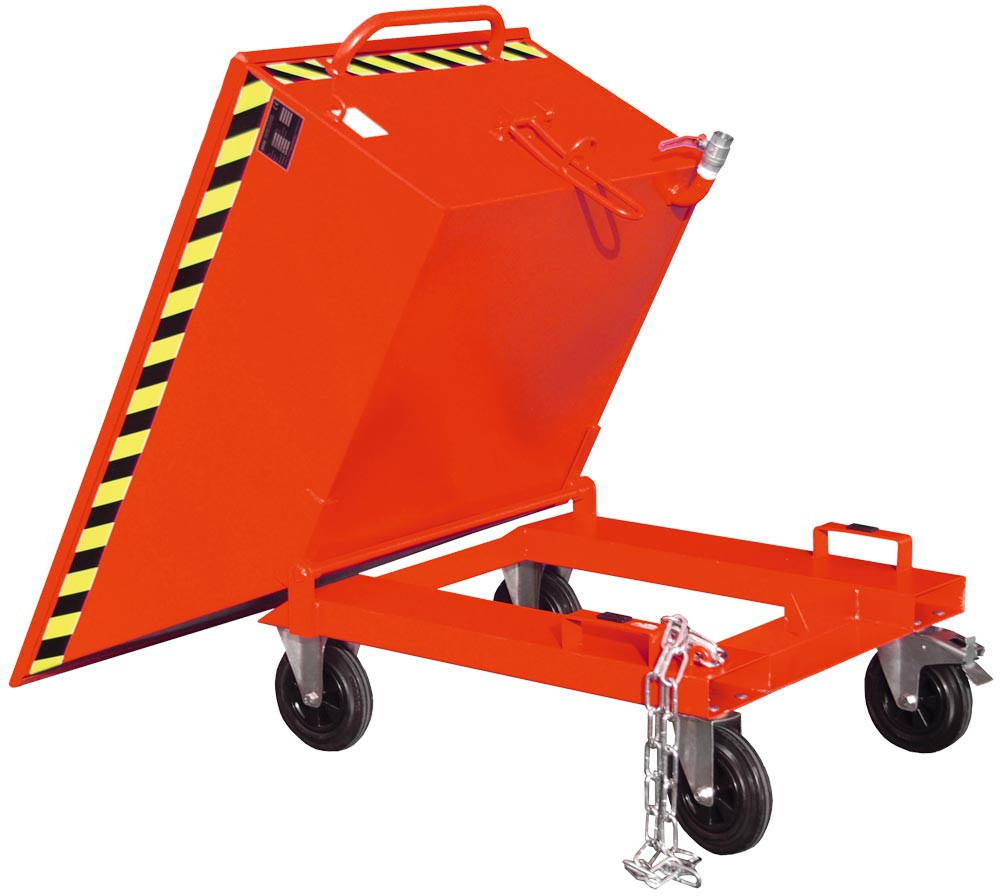 Späne-Kippmulde, Volumen 0,4 cbm, LxBxH 1430x840x605 mm, niedrige Mulde, lackiert RAL 3000 feuerrot EP557194