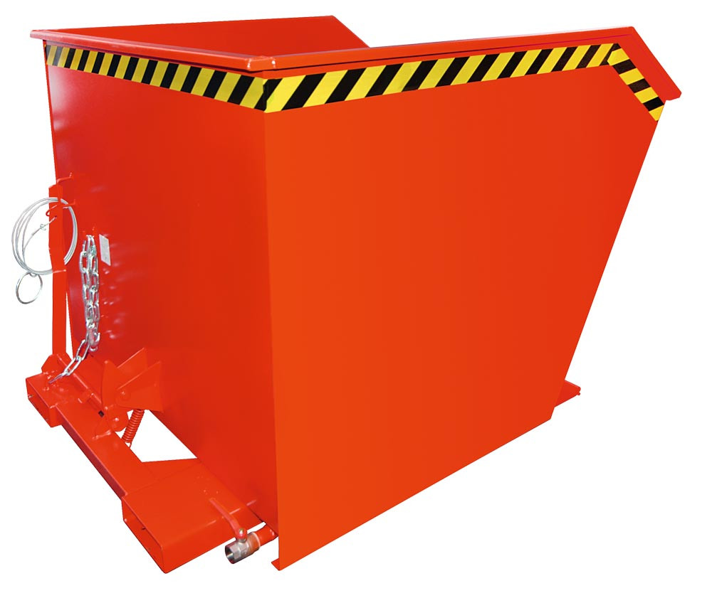 Späne-Mulden-Selbstkippbehälter, automatischer Aufrichter, Traglast 1000 kg, LxBxH 1440x780x680 mm, Vol. 0,50 cbm, RAL 3000 feuerrot