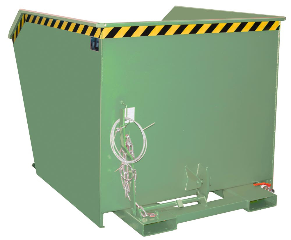 Späne-Mulden-Selbstkippbehälter, automatischer Aufrichter, Traglast 1000 kg, LxBxH 1440x780x680 mm, Vol. 0,50 cbm, RAL 6011 resedagrün