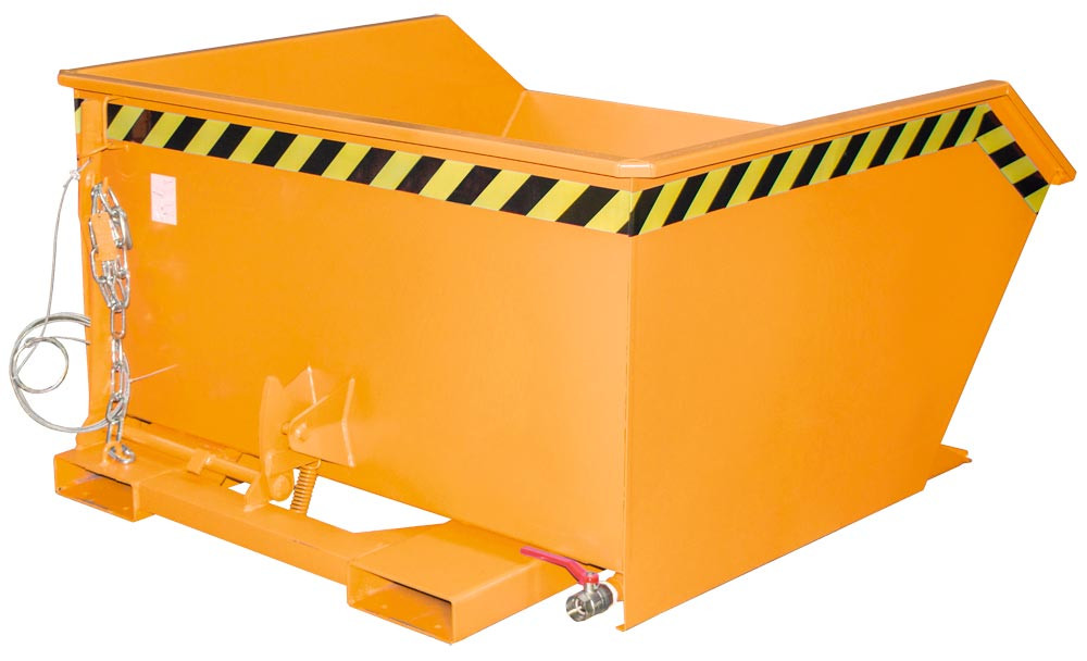Späne-Mulden-Selbstkippbehälter, automatischer Aufrichter, Traglast 750 kg, LxBxH 1440x680x580 mm, Vol. 0,30 cbm, RAL 2000 gelborange