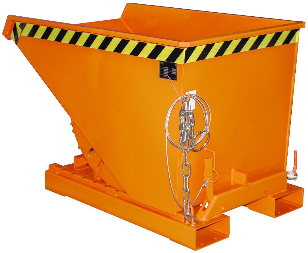 Späne-Selbstkippbehälter mit Abrollsystem, Volumen 0,225 cbm, LxBxH 960x925x540 mm, lackiert RAL 2000 orange EP558365