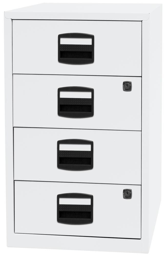 ∙ Die Einstiegsmodelle für den Büroalltag ∙ Diese kompakten und erschwinglichen Container eignen sich ideal für das Home-Office und Bereiche mit geringerer Nutzung ∙ Aufstellung freistehend oder unter dem Schreibtisch ∙ Zylinderschloss mit 2 Schlüsseln ∙ Schloss verschließt jeweils die Schublade und die darüberliegende Schublade ∙ Alle Schubladen sind mit kugelgelagerten Laufschienen ausgestattet ∙ A4 Hängeregistraturauszüge oder Schubladen, Auszug 75 %