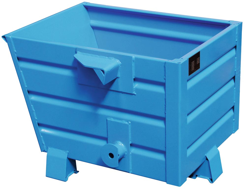∙ Robuste, profilierte Stahlblechkonstruktion ∙ Gefüllt 3-fach stapelbar ∙ 2 Zapfen zur Behälter-Aufnahme mittels Kipptraverse ∙ Für Entleerung per Seilzug vom Staplersitz aus bitte zusätzlich Kipptraverse mitbestellen