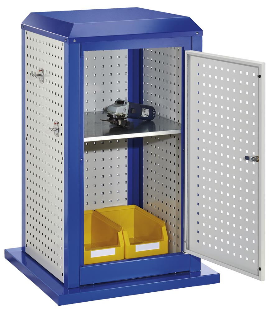 Tool-Tower klein, BxTxH 700x700x1100 mm, stationär, 3 Lochplatten, 1 Tür, RAL 5010/7035 EP535996
