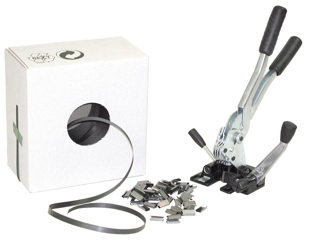 Umreifungs-Komplett-Set, PP 13 mm, Spann-Verschlussgerät, 1000 Meter Band, 2000 Hülsen EP510319