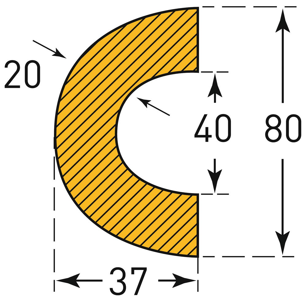 Warn- und Schutzprofil, Rohrschutz, Bogen, 40/75x37 mm, gelb/schwarz, magnetisch, Länge 1000 mm