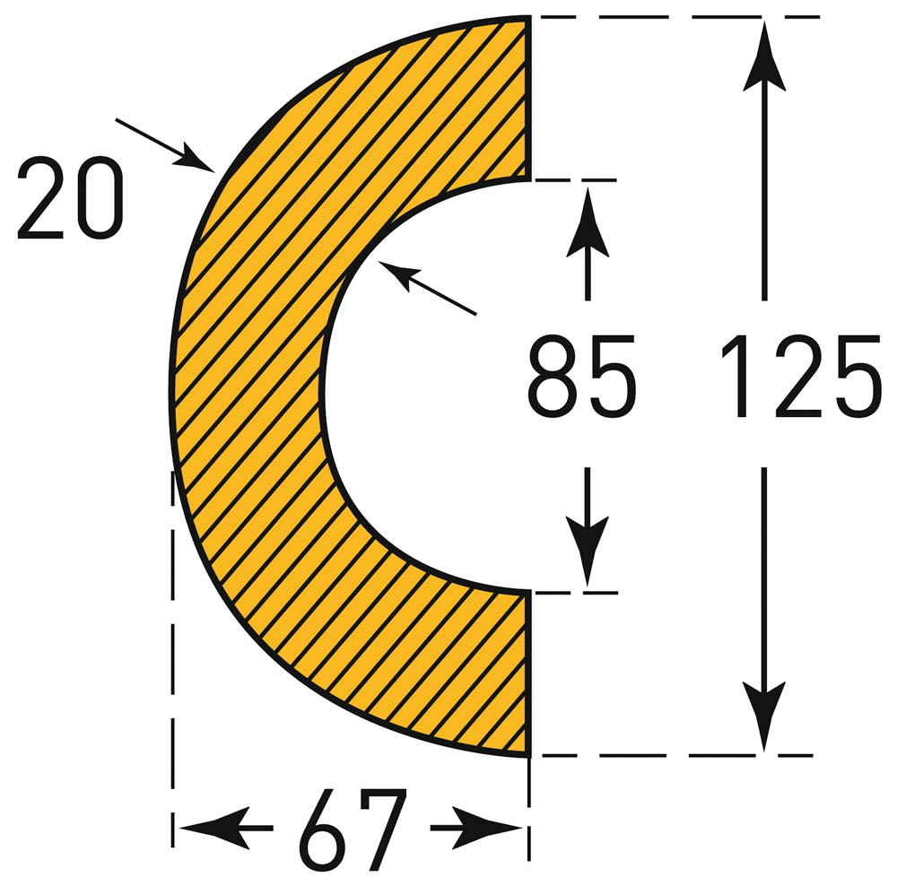Warn- und Schutzprofil, Rohrschutz, Bogen, 85/135x67 mm, gelb/schwarz, magnetisch, Länge 1000 mm
