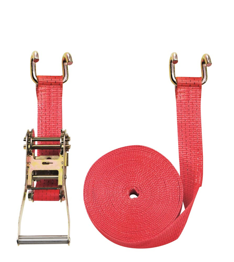 Zweiteiliger Zurrgurt, mit Rahmenhaken, 5000 daN zul. Zugkraft in der Umreifung, Gurtbreite 50 mm, Länge 10 m, Farbe rot, 5 Streifen, VE 2 Stück